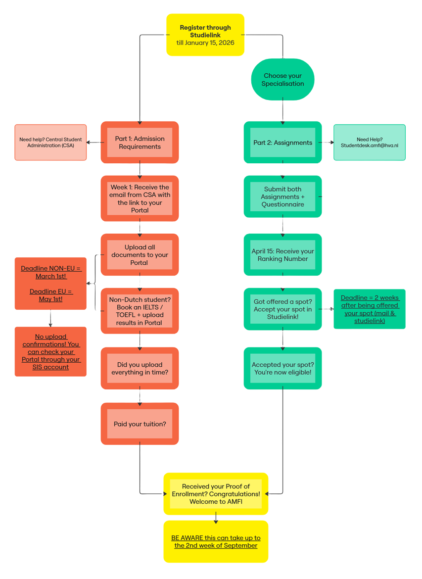 Part 1 – General Admission RequirementsYou must meet the admission criteria for AUAS. This is separate from the selection process for AMFI.